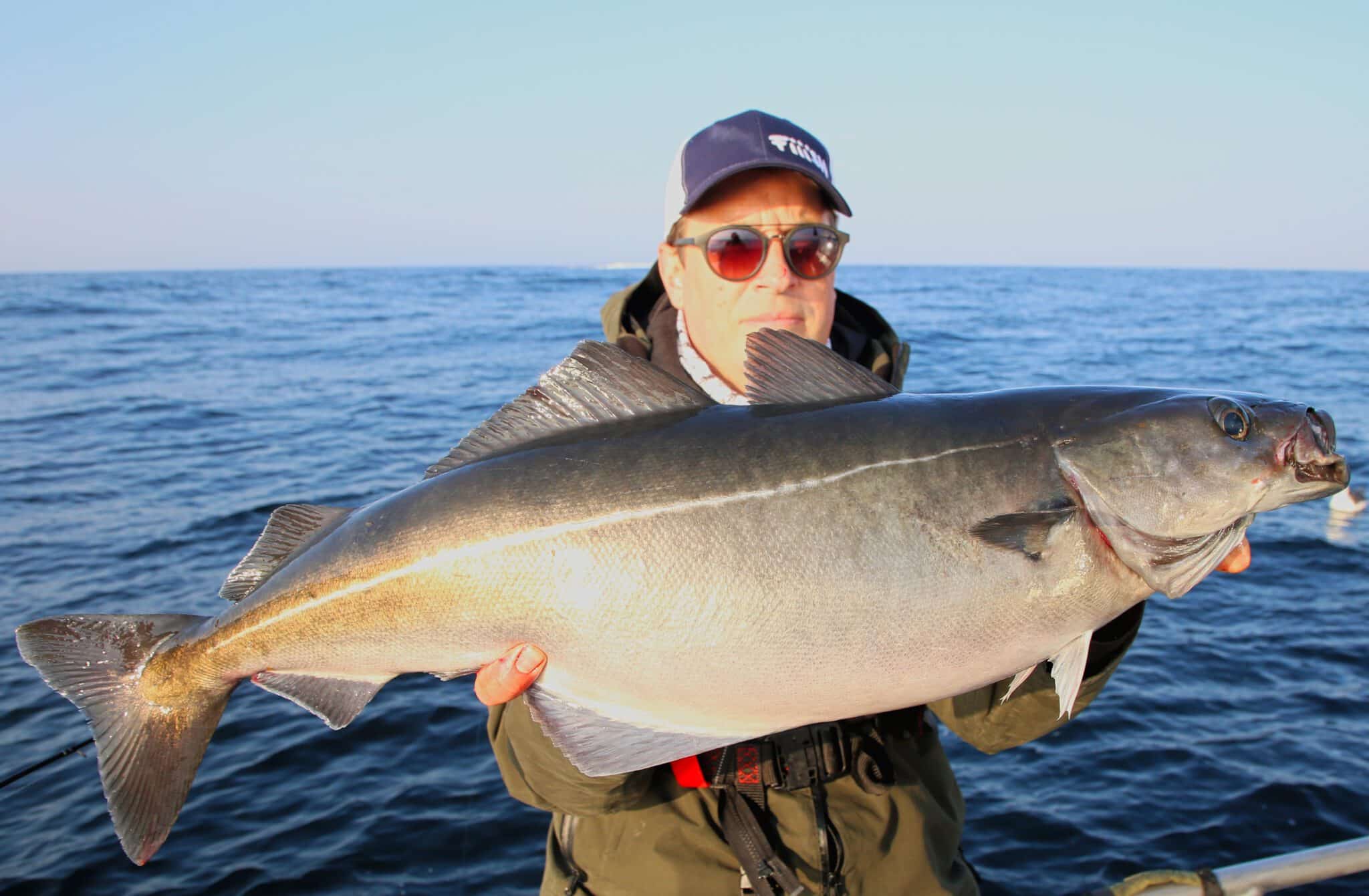 Pollock fishing improves each year, and during a June trip, we caught two pollock over 10 kg, with the biggest at 10,5 kg, likely the largest pollock ever caught in Northern Norway.